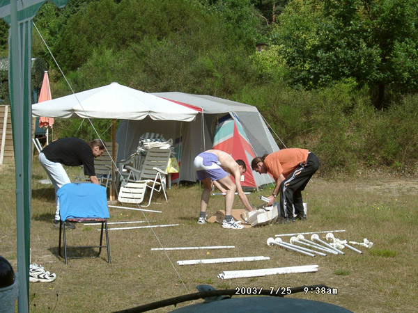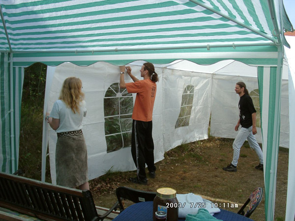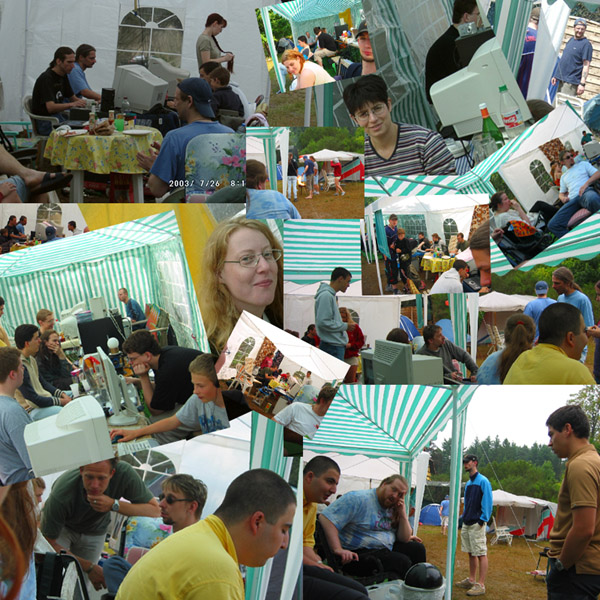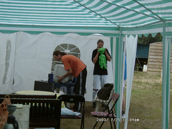 ![]() Ahhh.... die ersten Rechner werden aufgebaut... DOAW ES KANN BEGINNEN ;) Und wie man unschwer erkennen kann... blas ich das Maskottchen auf, das seit dem ersten DOAW immer an irgendeinem Baum hängt *g* |